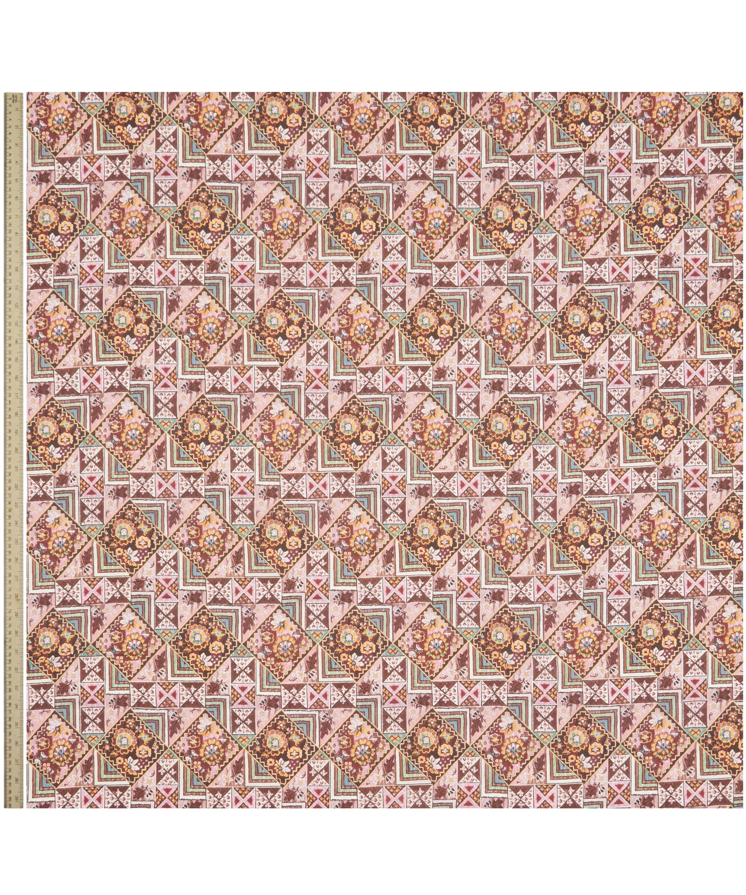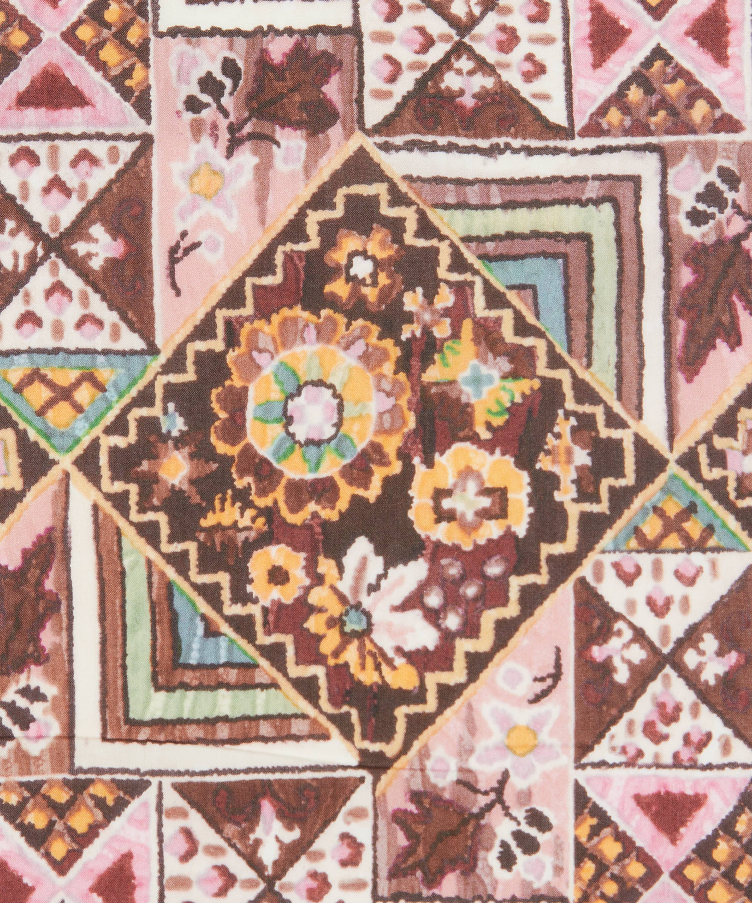 パターンと色が織りなす華やかな融合で、エクレクティックなファッションの達人アイリス・アプフェルの人生を讃えたデザインです。オリジナルは1963年に制作されたパターンで、テクスチャー豊かな花や幾何学模様が絡み合い、密度高く多方向に広がるマキシマリズムを表現しています。