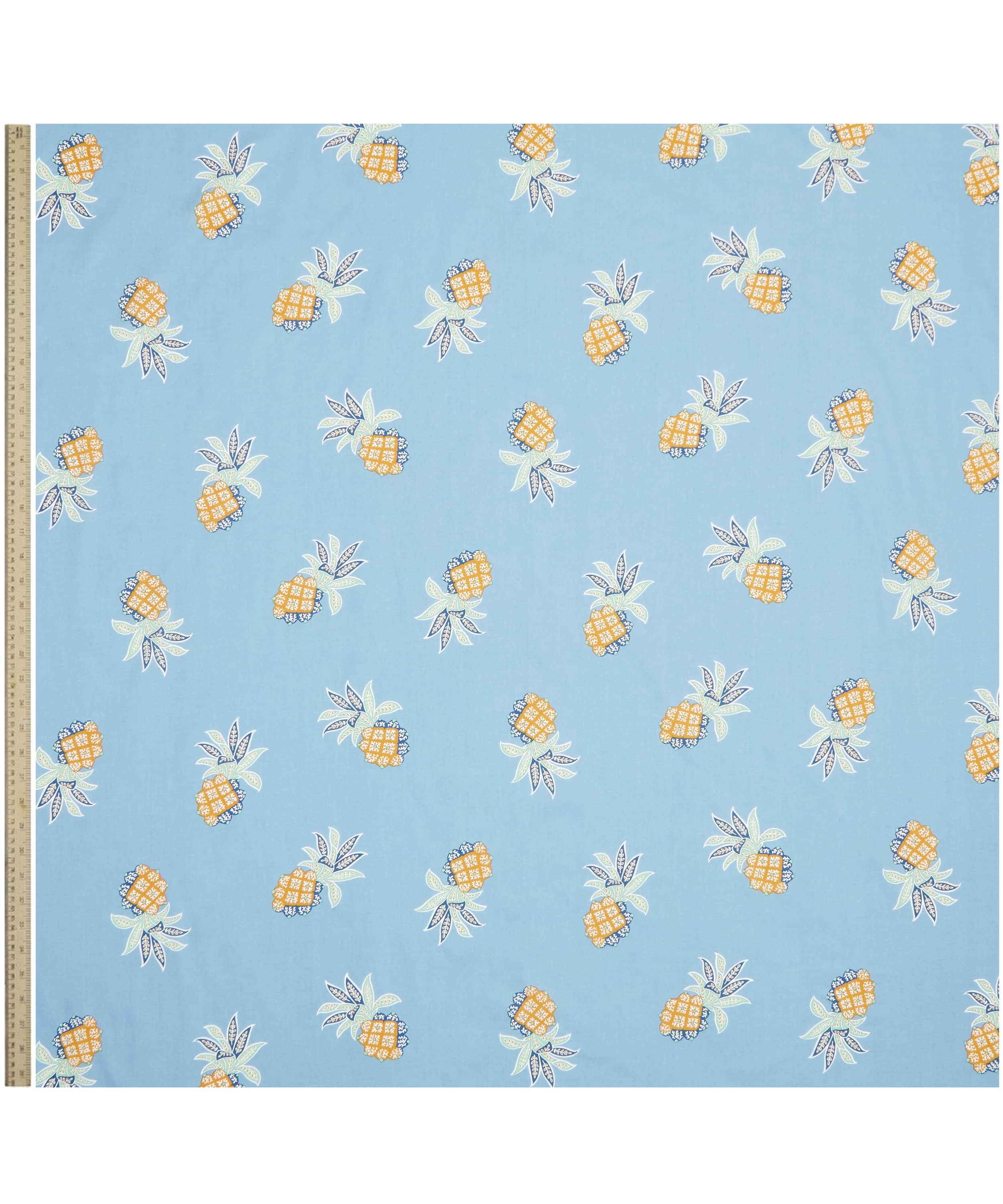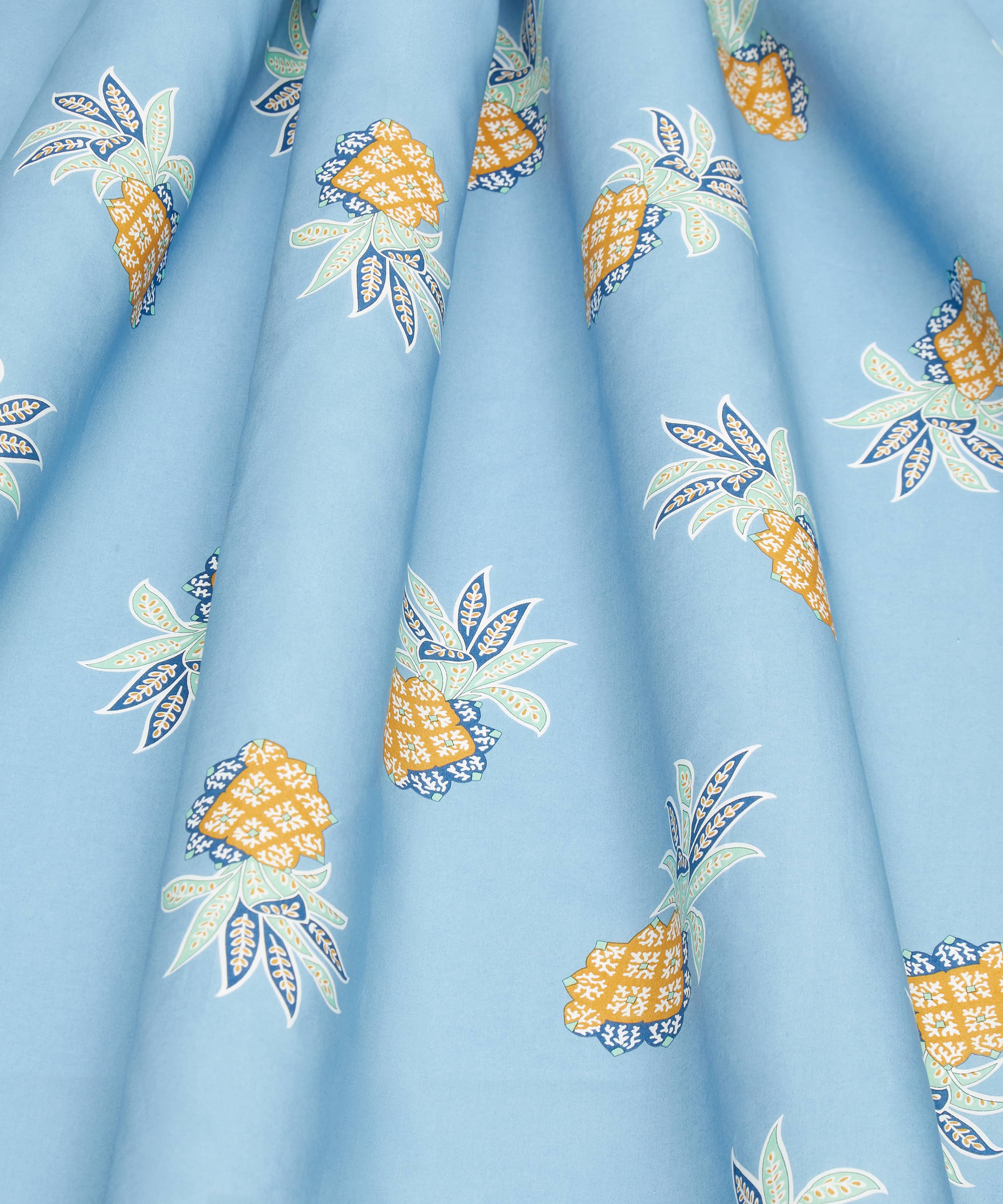 鮮やかでジューシーな色合いとクラシックなモチーフを組み合わせ、アーカイブデザインに新鮮で現代的なひねりを加えたデザインです。再描画され、全体に繰り返し配置されたパターンでは、パイナップルの細部まで様式化された要素で表現され、とげのある葉やテクスチャーのある表面の幾何学的な形状が強調されています。