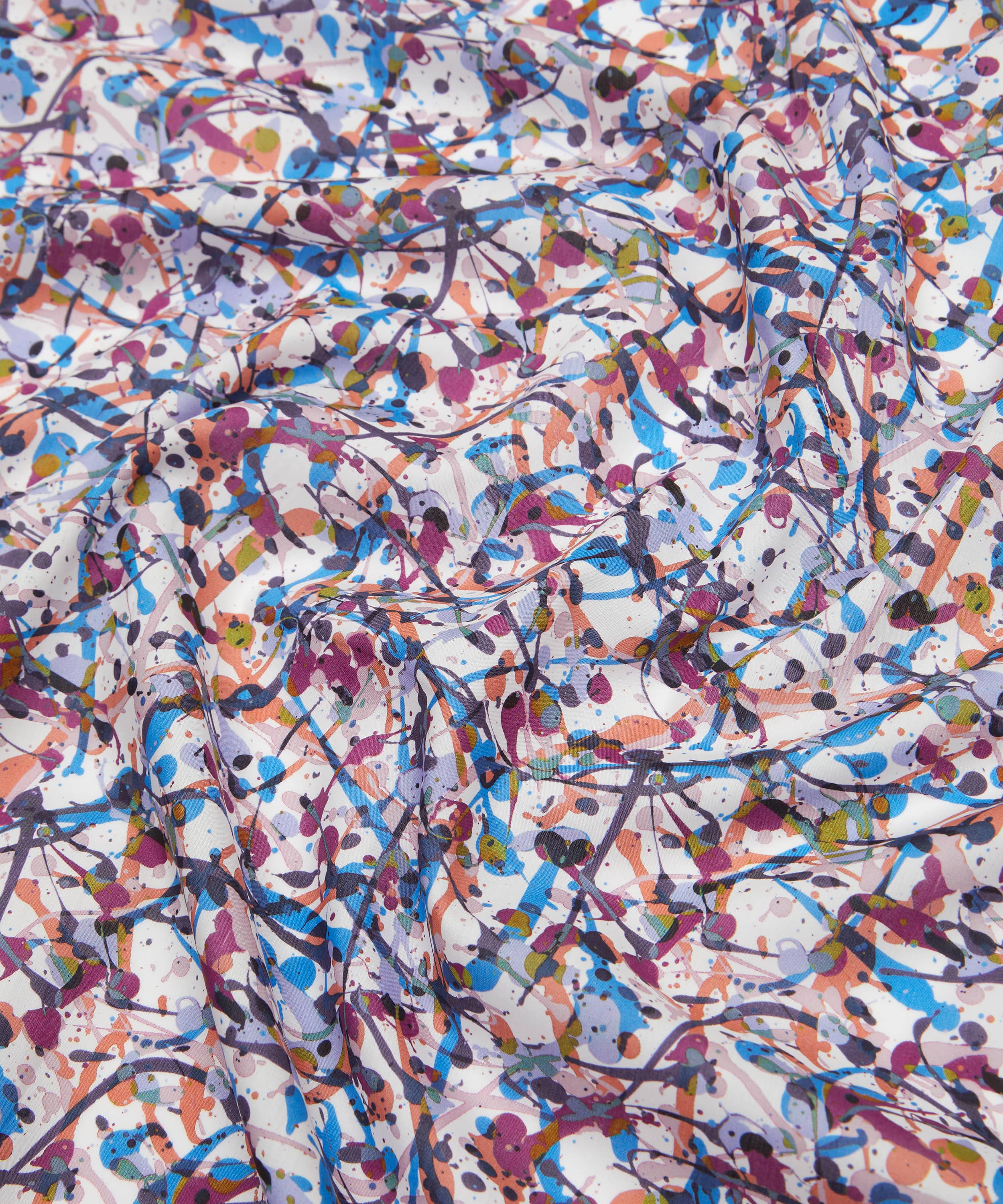 現代のクリエイティブたちのリズムと90年代のクラブシーンにインスパイアされたこのデザインは、アンダーグラウンドのダンスパーティーの壁を飾ったエネルギッシュなペイントの飛び散りを探求しています。非常にジェスチャー豊かで強烈に表現力豊かなこの抽象的なパターンは、リバティデザインスタジオで手描きされ、ほとんど催眠的な即興性と混沌を感じさせます。