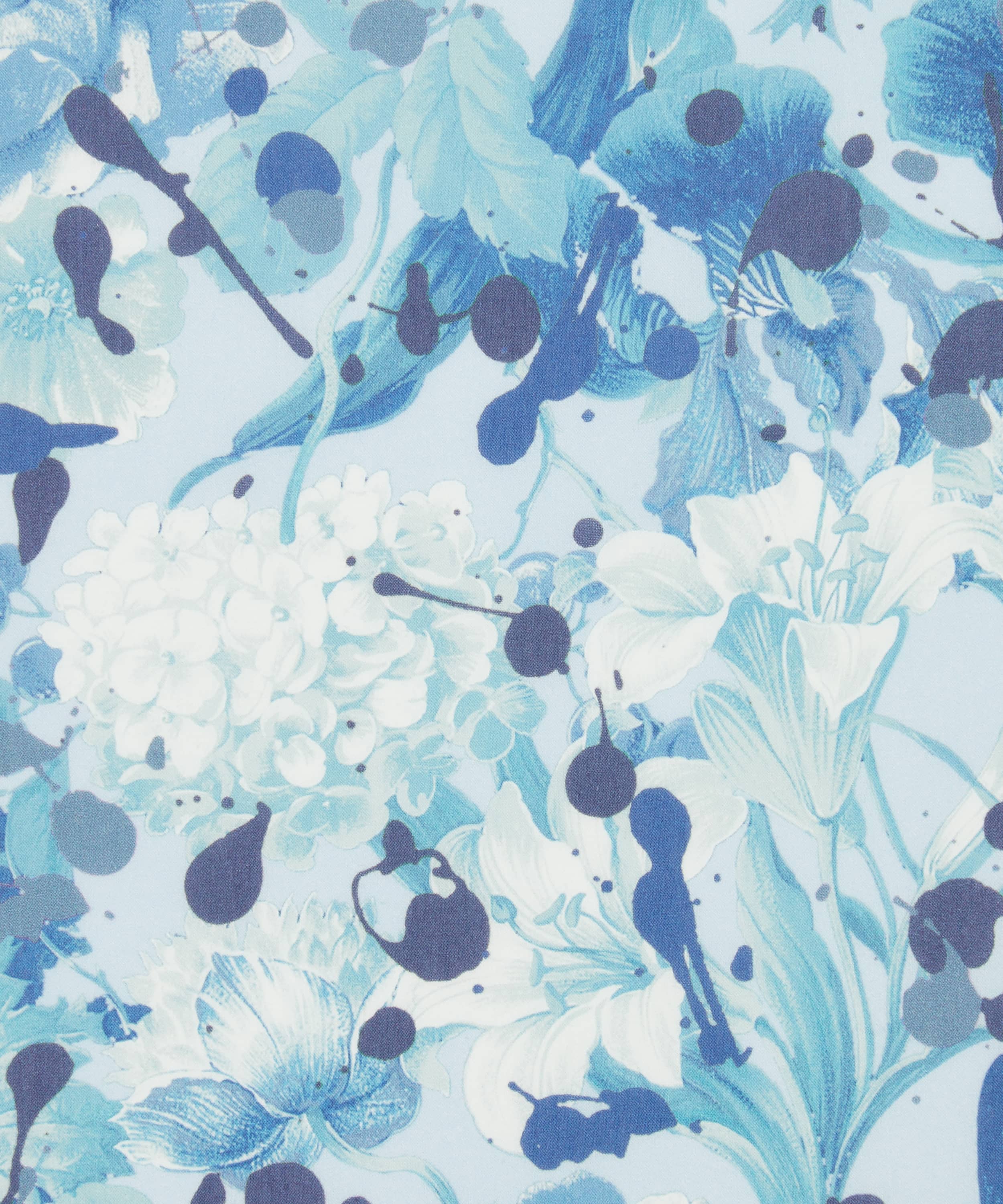 反骨精神を表現したこのデザインは、リバティデザインチームがオリジナルの手描きスカーフを再構築し、強烈な印象を与えるパターンへと変貌させました。伝統的な花柄の上に大胆でダイナミックなペイントの飛び散りが施された「パンク・ポゥジー」は秩序と混沌の境界を曖昧にし、リバティの豊かな歴史と反抗的な現代的エッジを融合させています。