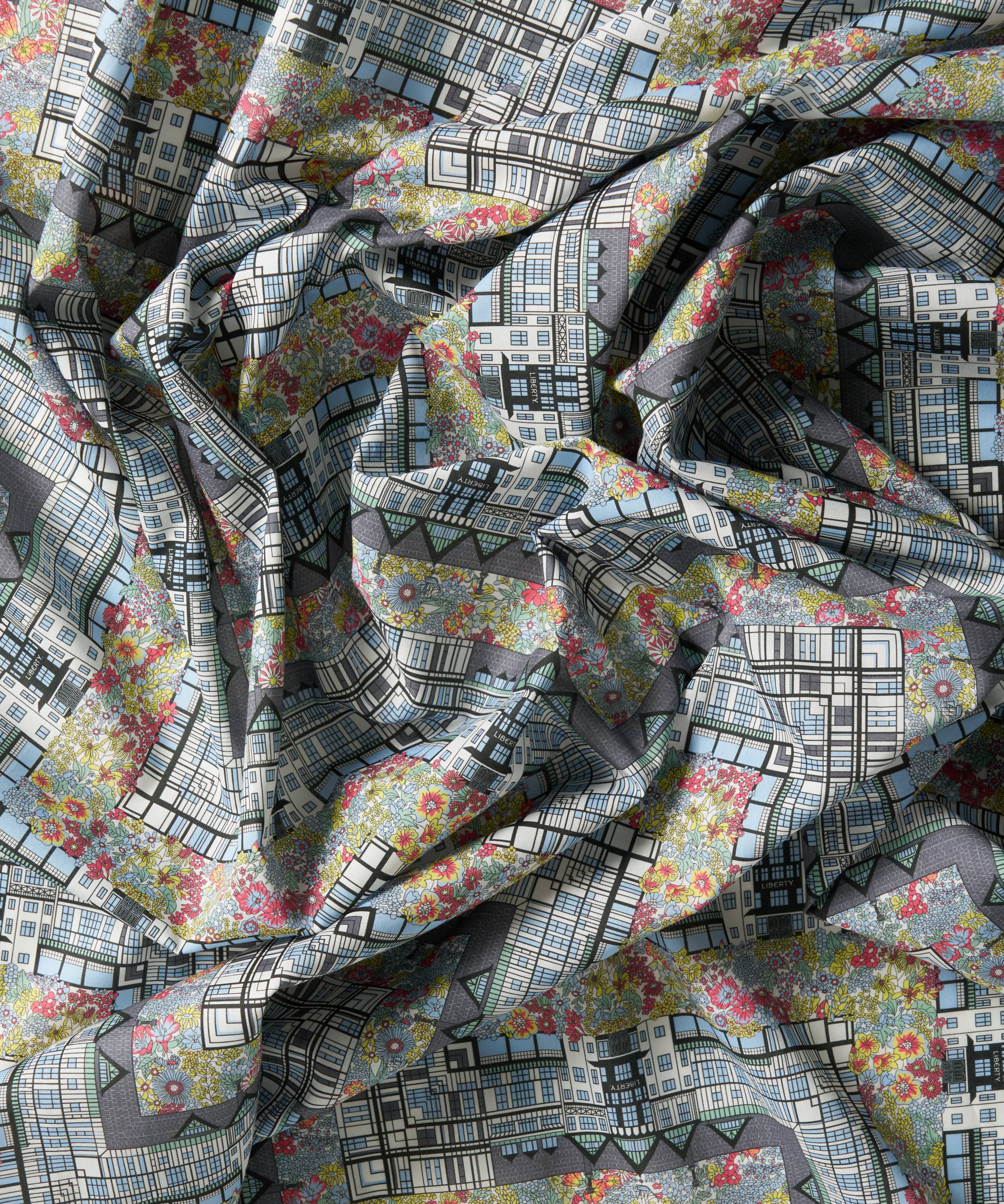リバティを象徴するロンドンのフラッグシップストアへのオマージュとして描かれた、フローラルモチーフと建築的な幾何学要素を組み合わせたデザインの「チューダー・ベル」。リバティの大きな木製扉をくぐった瞬間の高揚感を表現し、通り沿いには、名高いリバティのフラワーショップに敬意を表して再構築された「マーガレット・アニー」が配されています。