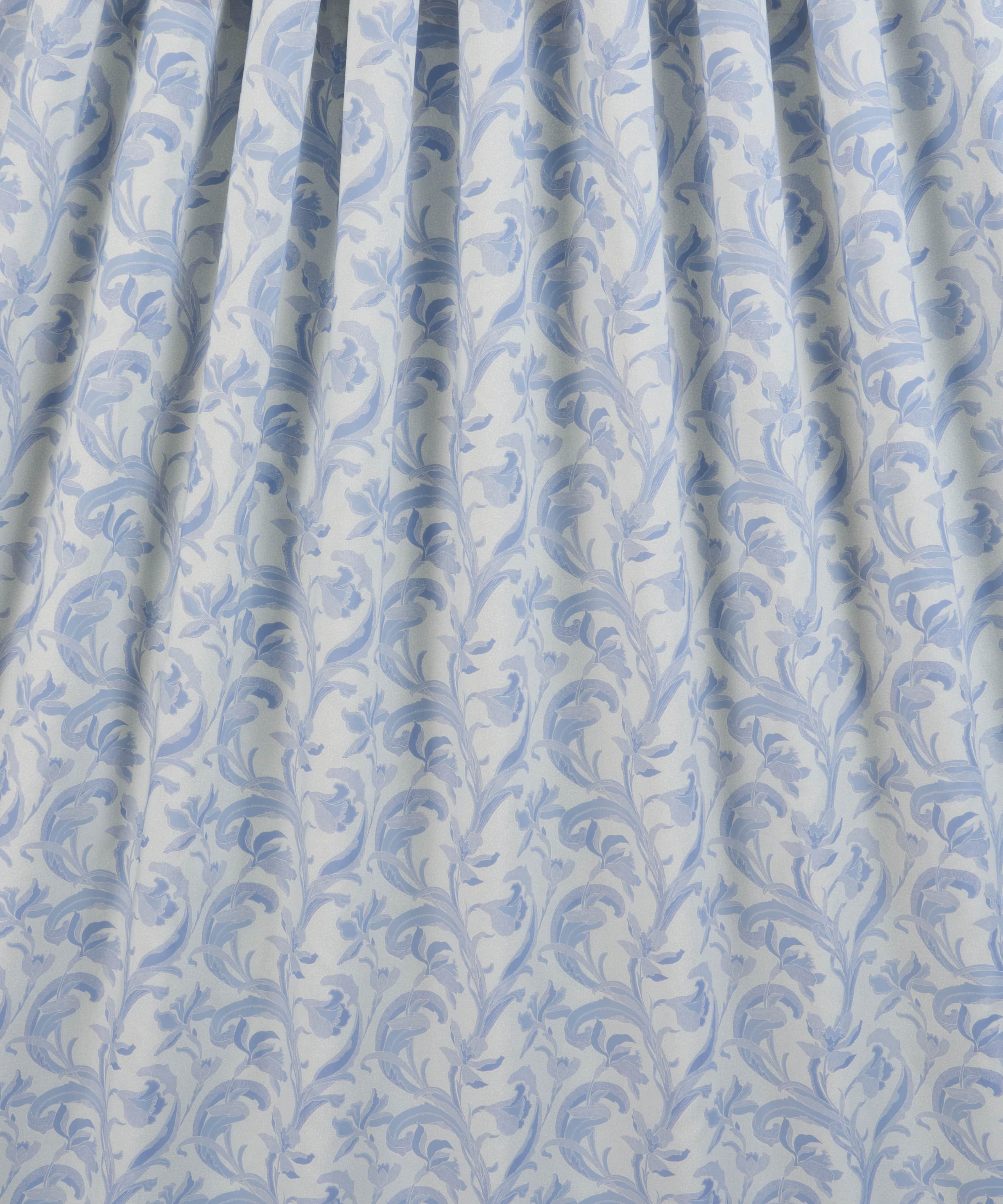 リバティのアーカイブで発見された手描き作品をもとに、同名の歴史ある陶磁器の伝統に着想を得た「セラドン」。細部に至るまで丁寧に描き直し、配色を刷新することで、装飾性に満ちた豊かな表情が引き出されています。様式化されたスイセンと流れるような葉のモチーフが、アール・ヌーヴォーを思わせる優雅さで、しなやかな縦のラインを描きながら立ち上がります。さらに、繊細な線で描かれたスクイグル状の地模様が、さりげない奥行きと質感を添えています。