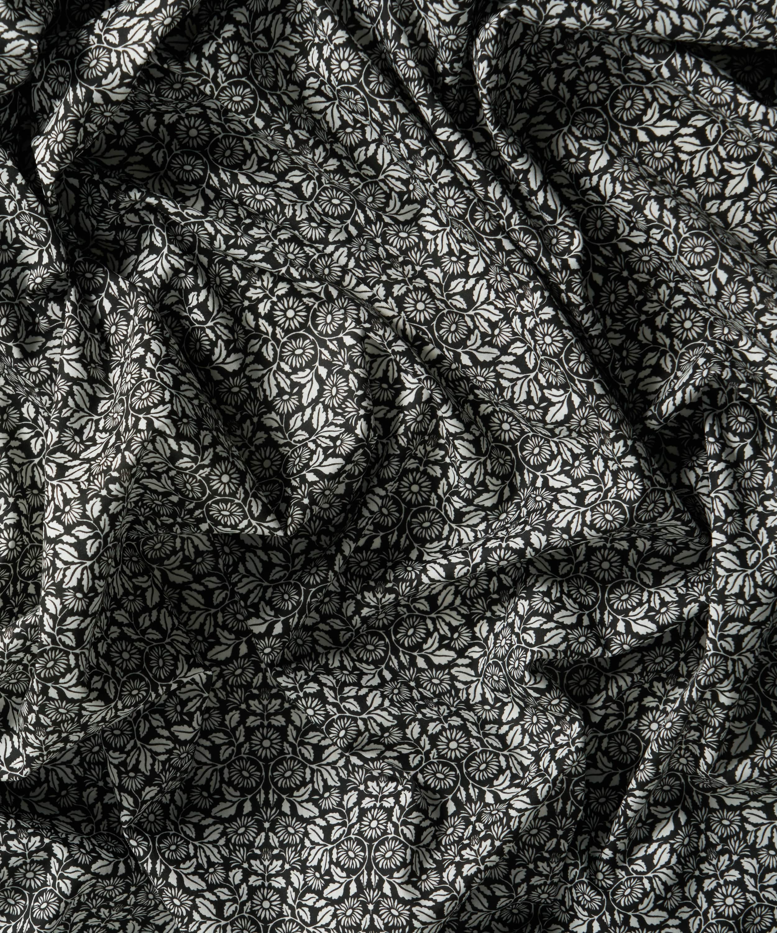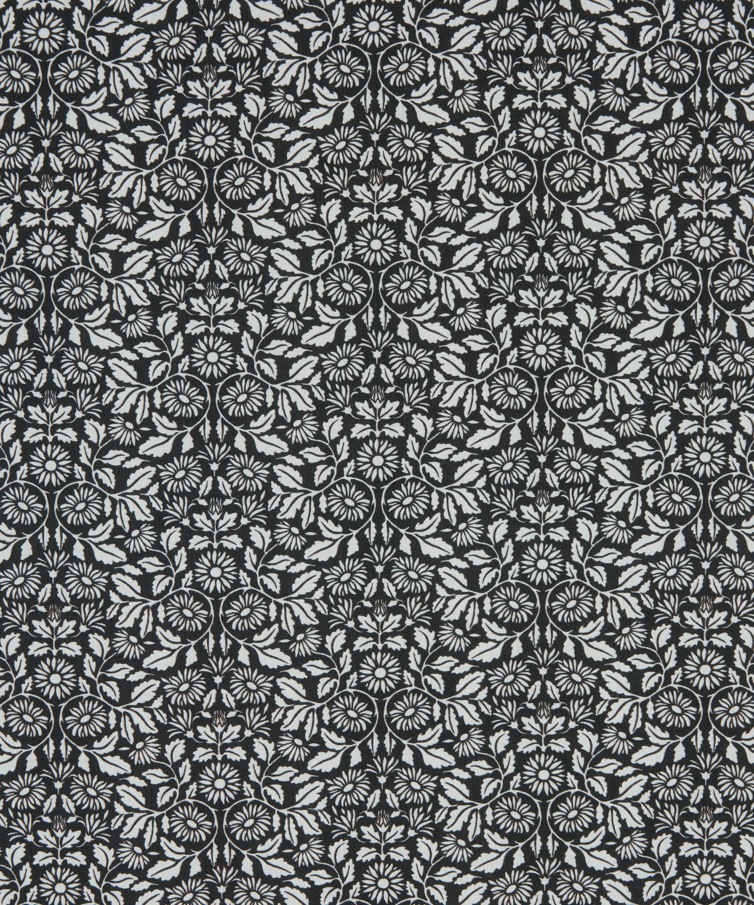 「ハンリー・フォレスト」に見られるアール・ヌーヴォーの要素から着想を得た、モノクローム表現の「クレイ・デイジー」。簡潔に描かれたデイジーと流れるような葉のモチーフを、連続するクライミング・トレリスのような構成へと再構築しています。左右対称のレイアウトは、釉薬タイルの装飾的なスクロールワークを想起させ、構築的なフォルムとツートーンの配色が、汎用性の高い、現代的で洗練されたキャラクターを生み出しています。