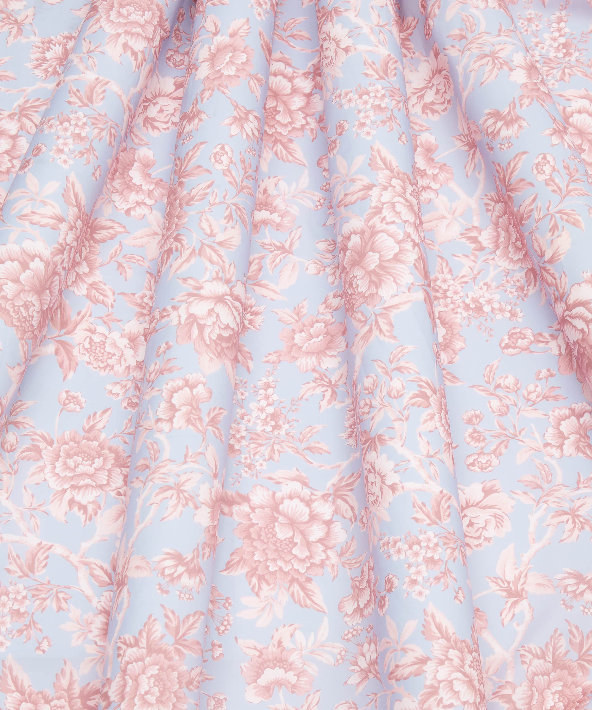 「レジェンシー・トレイル」は、リバティが誇る〈ツリー・オブ・ライフ〉様式の系譜に敬意を表し、1969年に手描きされたアートワークに着想を得て生まれたデザインです。丹念に再構築された構図には、流れるように伸びる枝葉の間に、堂々と咲くピオニー、キク、カーネーション、可憐な花々、フクシアが配され、豊かな枝葉とともに描かれています。濃淡のある色調の重なりがコントラストと奥行き、そして輪郭の美しさを生み出し、柄全体を神秘性と洗練に満ちた雰囲気で包み込んでいます。