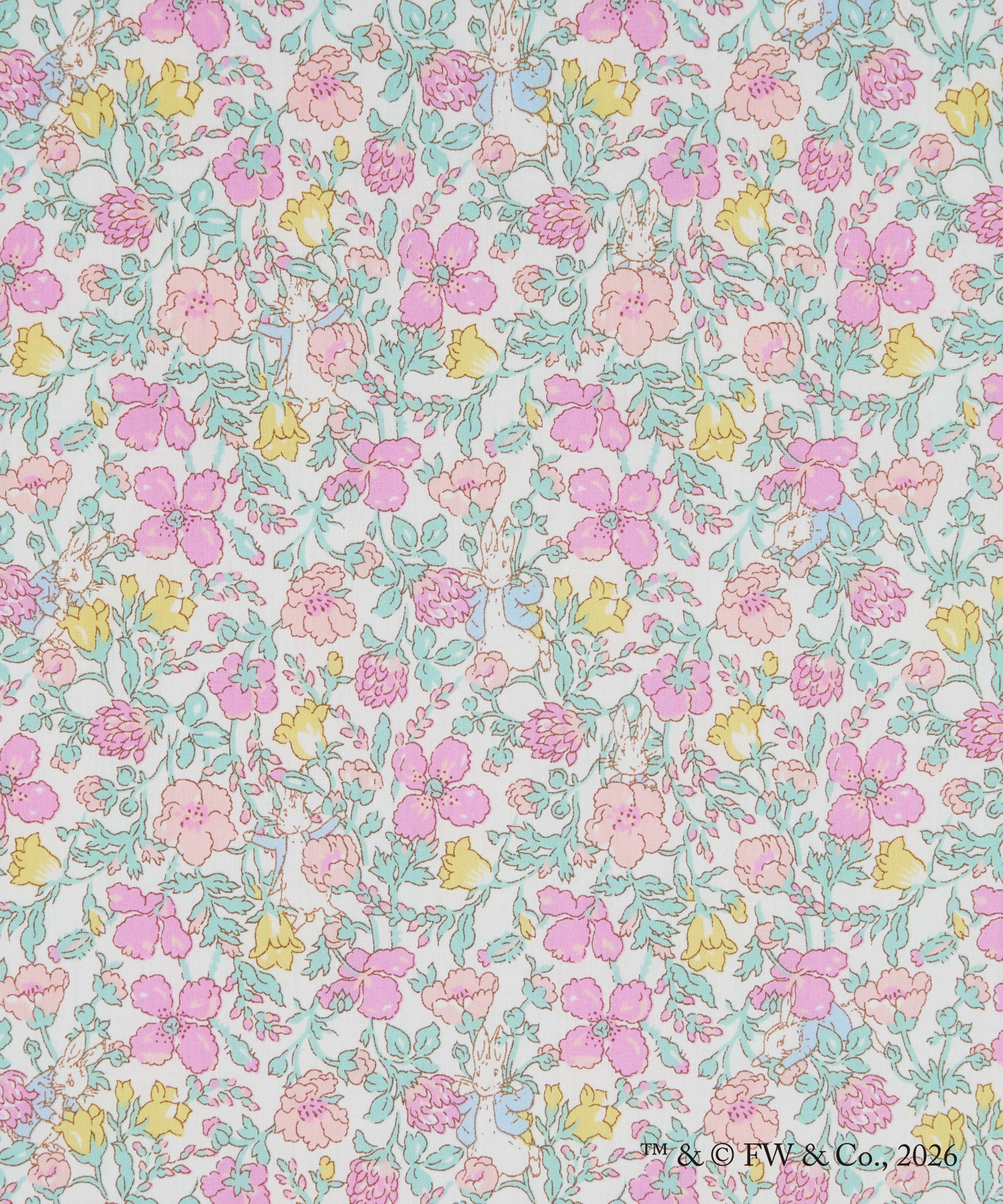 野生の草原に咲く花々に隠れているキャラクターをよーく見てください。そう!ピーターラビット(TM)です。イングリッシュガーデンに咲くポピーやブルーベルを楽しく表現した1930年代の象徴的なこのデザインは、30年以上にわたりクラシック・コレクションに加入していました。(C)FW&Co.,2026