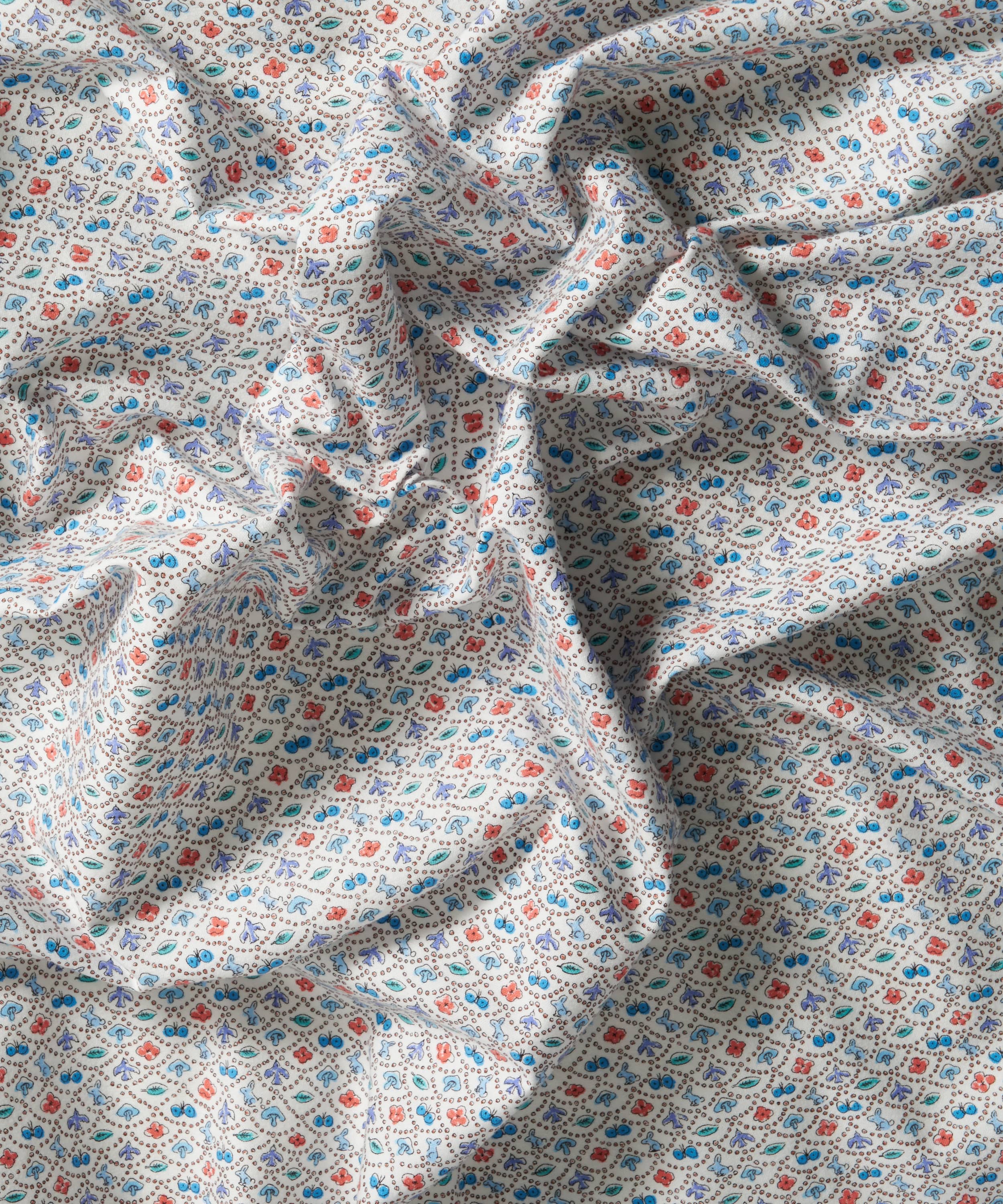 ミナ ペルホネンとのコラボレーションによる、デザイナー皆川明氏が描いた「フォレストウェーブ」。鳥やうさぎ、葉などが寄り添うように描かれたこのデザインは、森の生態系が息吹を持って繋がりあう様子が表現されています。