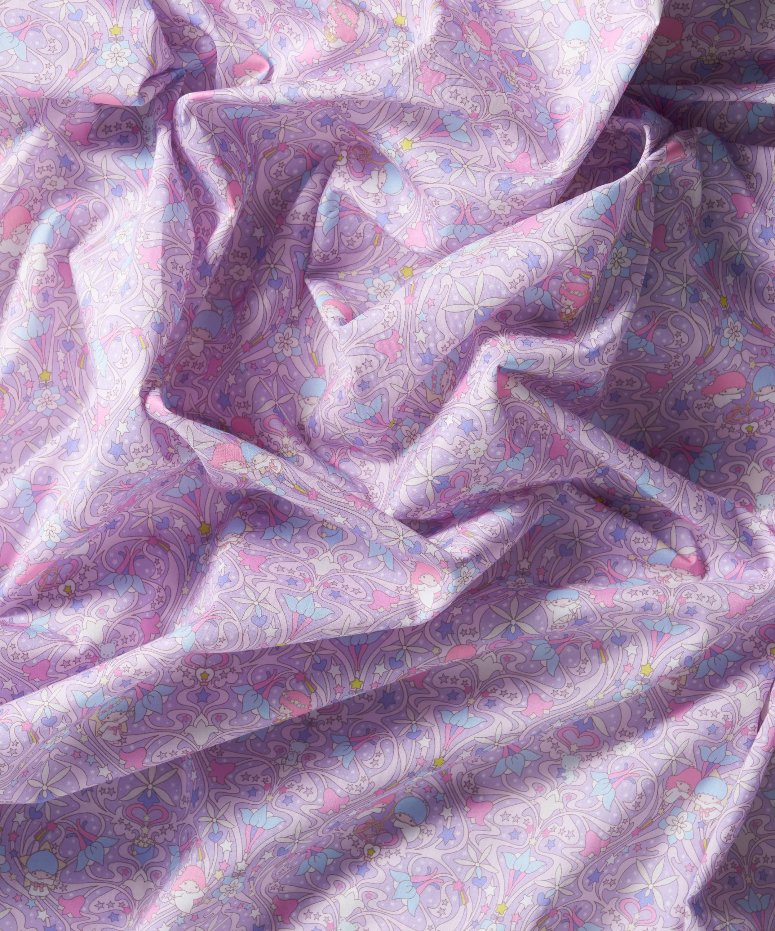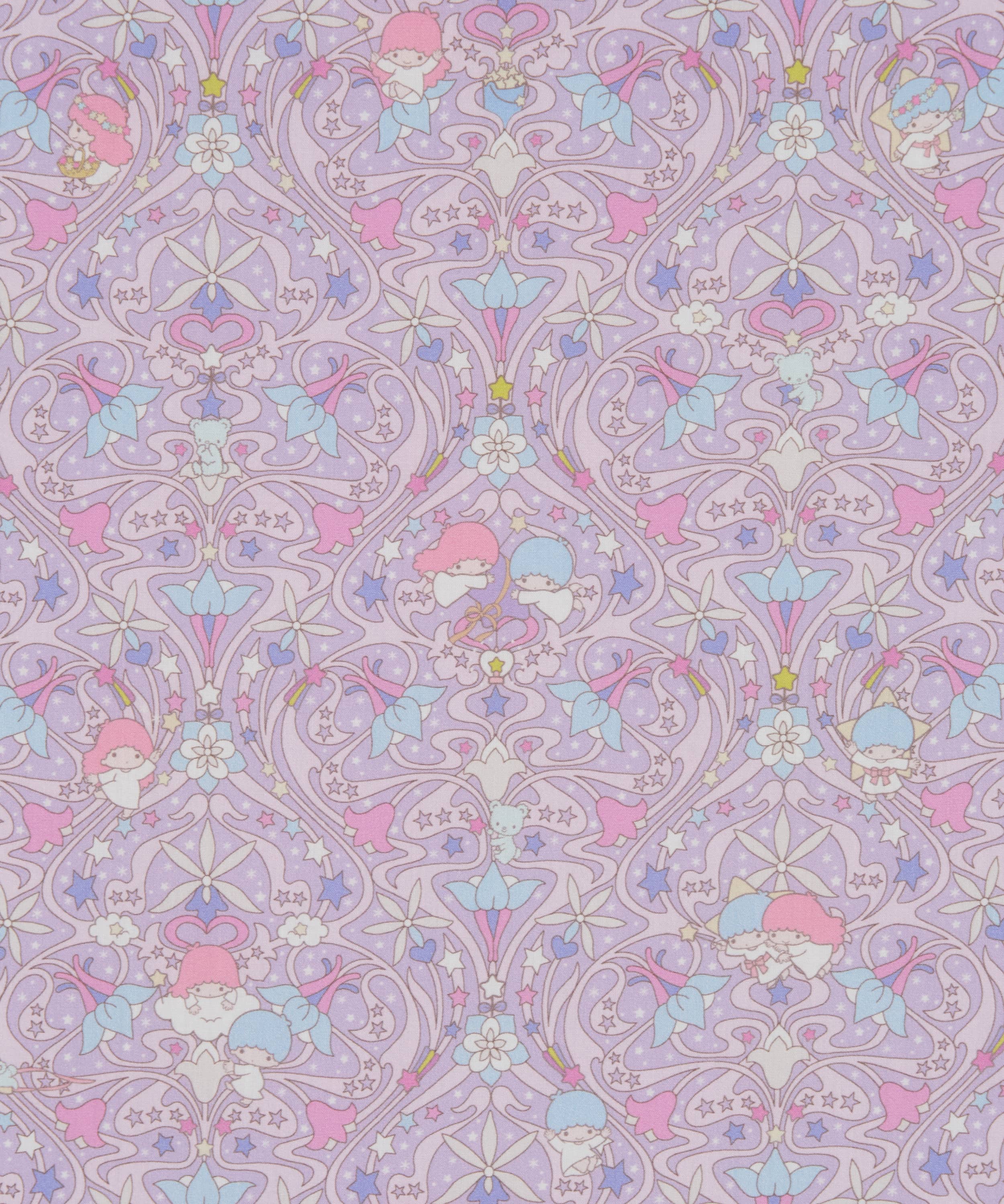 1969年に手描きで制作されたリバティのアートワークに着想を得たこのデザインは、幽玄な美しさを持つゴーストオーキッド(幽霊蘭)を称えています。「森の星」とも呼ばれるこの個性的な花は、リトルツインスターズのキャラクターたちを引き立てる完璧な背景です。植物の曲線模様はアール・ヌーヴォーの優雅さを思わせながらデザイン全体に織り込まれ、遊び心あふれる星空の庭園に伝統的な風格を添えています。